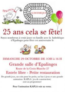 Voici une belle occasion pour jouer en famille ou entre amis….Profitez de fêter avec les bénévoles, les 25 ans de la ludothèque d’Epalinges .