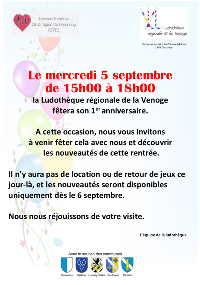 1 er anniversaire pour la ludothèque régionale de la Venoge